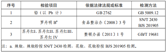 辣椒、花椒、辣椒粉、花椒粉檢驗項目
